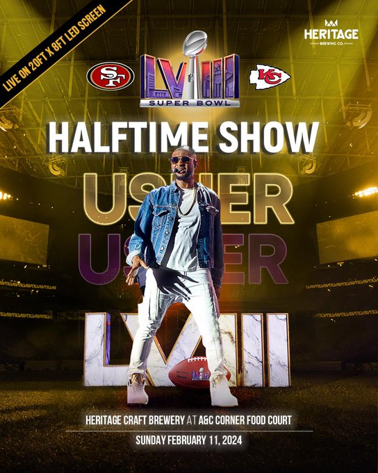 Usher aparecerá en el escenario, al medio tiempo del encuentro. Se trata del segundo show patrocinado por Apple Music, que relevó a Pepsi tras firmar un acuerdo con la NFL en 2022 válido por los siguientes cinco años.